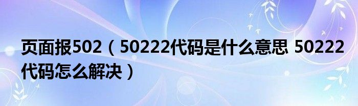 頁面報502(50222代碼是什么意思 50222代碼怎么解決)