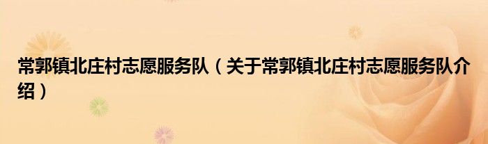 常郭鎮北莊村志愿服務隊(關于常郭鎮北莊村志愿服務隊介紹)