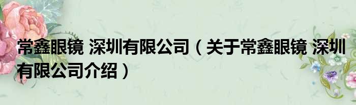 常鑫眼鏡 深圳有限公司(關于常鑫眼鏡 深圳有限公司介紹)