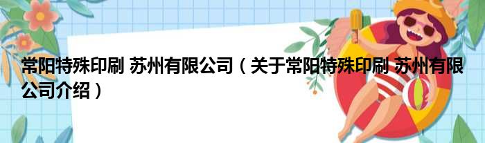 常陽特殊印刷 蘇州有限公司(關于常陽特殊印刷 蘇州有限公司介紹)
