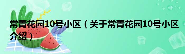 關于常青花園10號小區到此分享完畢,希望能幫助到您。