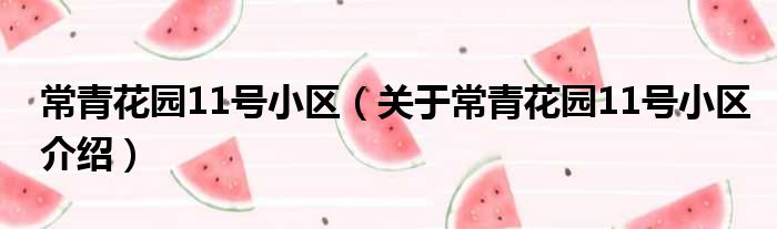 常青花園11號小區(關于常青花園11號小區介紹)