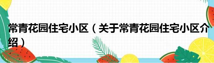 常青花園住宅小區(關于常青花園住宅小區介紹)