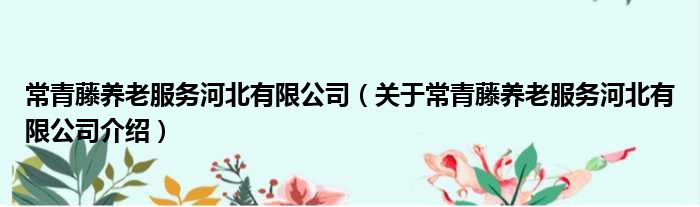 常青藤養老服務河北有限公司(關于常青藤養老服務河北有限公司介紹)