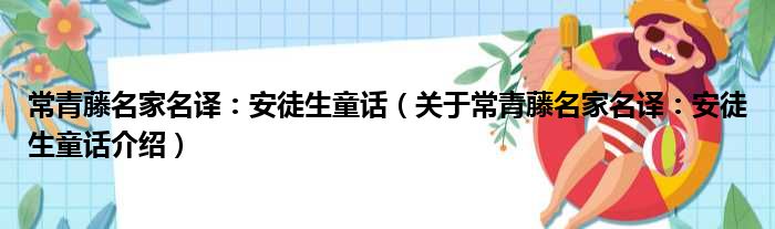 導讀 大家好,笑笑來為大家解答以上的問題。常青藤名家名譯:安徒生童話,關于常青藤名家名譯:安徒生童話介紹這個很多人還不知道,現在讓我們一起
