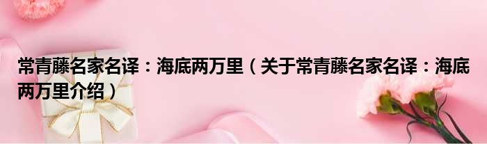 導讀 大家好,笑笑來為大家解答以上的問題。常青藤名家名譯:海底兩萬里,關于常青藤名家名譯:海底兩萬里介紹這個很多人還不知道,現在讓我們一起