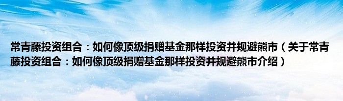 大家好,笑笑來為大家解答以上的問題。常青藤投資組合:如何像頂級捐贈基金那樣投資并規避熊市,關于常青藤投資組合:如何像頂級捐贈基金那樣投資并規避熊市介紹這個很多人還不知道,現在讓我們一起來看看吧!