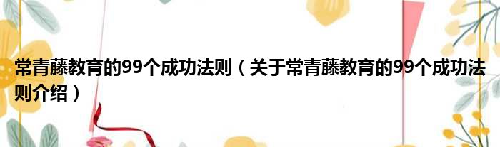 常青藤教育的99個成功法則(關于常青藤教育的99個成功法則介紹)
