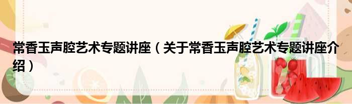 常香玉聲腔藝術專題講座(關于常香玉聲腔藝術專題講座介紹)