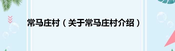 關于常馬莊村到此分享完畢,希望能幫助到您。
