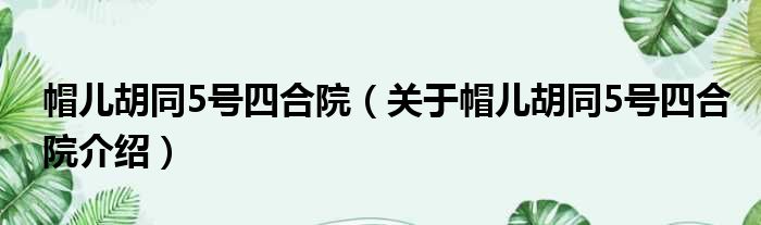 帽兒胡同5號四合院(關于帽兒胡同5號四合院介紹)