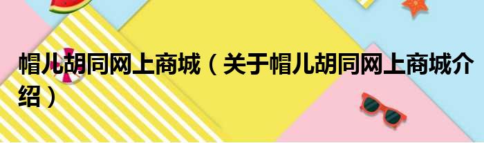 關于帽兒胡同網上商城到此分享完畢,希望能幫助到您。