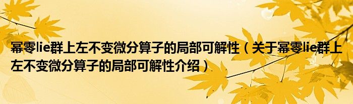 導讀 大家好,笑笑來為大家解答以上的問題。冪零lie群上左不變微分算子的局部可解性,關于冪零lie群上左不變微分算子的局部可解性介紹這個很多人