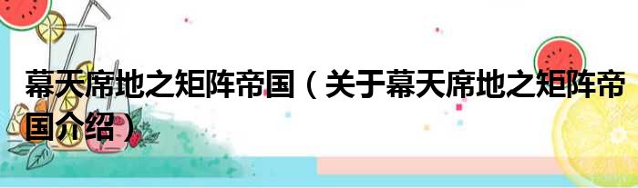 幕天席地之矩陣帝國(關于幕天席地之矩陣帝國介紹)
