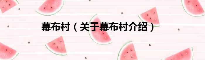 大家好,笑笑來為大家解答以上的問題。幕布村,關于幕布村介紹這個很多人還不知道,現在讓我們一起來看看吧!