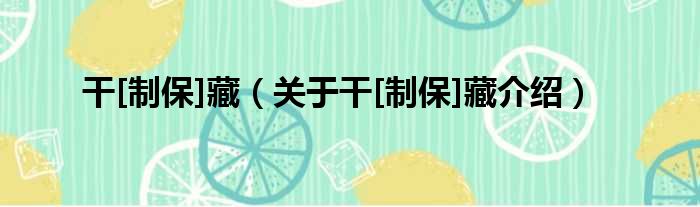 大家好,笑笑來為大家解答以上的問題。干[制保]藏,關于干[制保]藏介紹這個很多人還不知道,現在讓我們一起來看看吧!