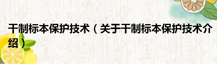 導讀 大家好,笑笑來為大家解答以上的問題。干制標本保護技術,關于干制標本保護技術介紹這個很多人還不知道,現在讓我們一起來看看吧!1、 干