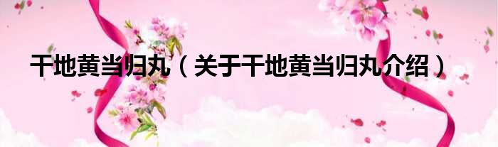 干地黃當歸丸(關于干地黃當歸丸介紹)