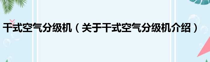 干式空氣分級機(關于干式空氣分級機介紹)