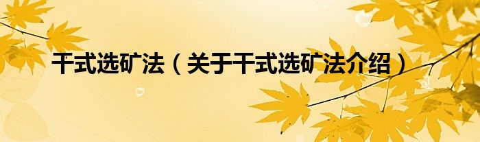 關于干式選礦法到此分享完畢,希望能幫助到您。