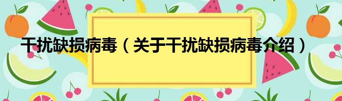 干擾缺損病毒(關于干擾缺損病毒介紹)