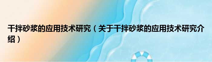 干拌砂漿的應用技術研究(關于干拌砂漿的應用技術研究介紹)