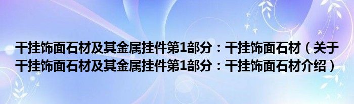 導讀 大家好,笑笑來為大家解答以上的問題。干掛飾面石材及其金屬掛件第1部分:干掛飾面石材,關于干掛飾面石材及其金屬掛件第1部分:干掛飾面石