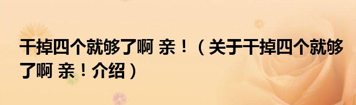 干掉四個就夠了啊 親!(關于干掉四個就夠了啊 親!介紹)