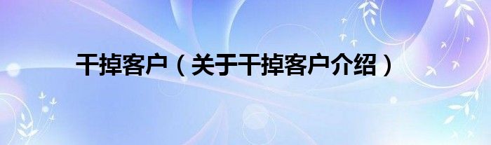 大家好,笑笑來為大家解答以上的問題。干掉客戶,關于干掉客戶介紹這個很多人還不知道,現在讓我們一起來看看吧!