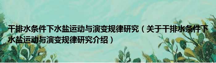 干排水條件下水鹽運動與演變規律研究(關于干排水條件下水鹽運動與演變規律研究介紹)