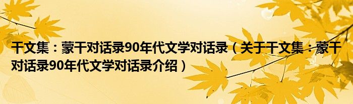 關于干文集:蒙干對話錄90年代文學對話錄到此分享完畢,希望能幫助到您。