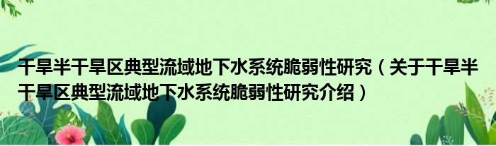 干旱半干旱區典型流域地下水系統脆弱性研究(關于干旱半干旱區典型流域地下水系統脆弱性研究介紹)