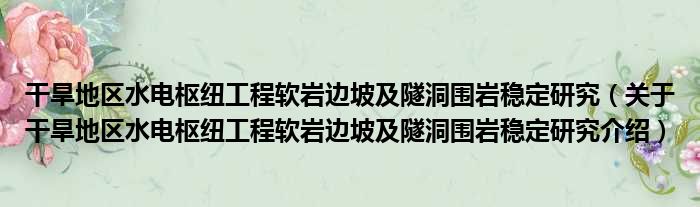 干旱地區水電樞紐工程軟巖邊坡及隧洞圍巖穩定研究(關于干旱地區水電樞紐工程軟巖邊坡及隧洞圍巖穩定研究介紹)