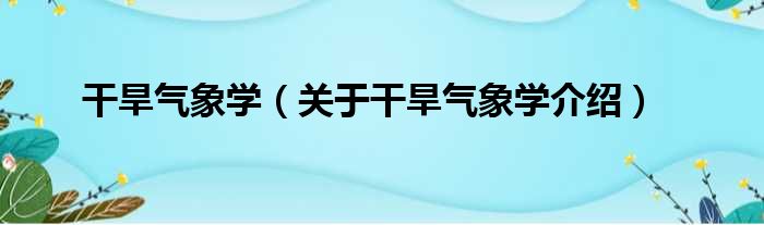 關于干旱氣象學到此分享完畢,希望能幫助到您。