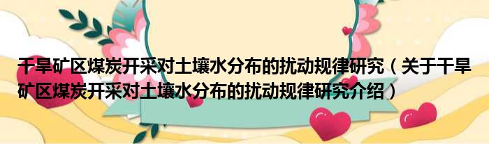 干旱礦區煤炭開采對土壤水分布的擾動規律研究(關于干旱礦區煤炭開采對土壤水分布的擾動規律研究介紹)