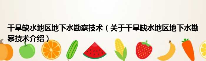 干旱缺水地區地下水勘察技術(關于干旱缺水地區地下水勘察技術介紹)