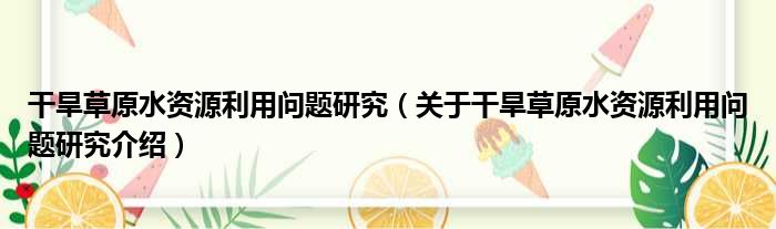 干旱草原水資源利用問題研究(關于干旱草原水資源利用問題研究介紹)