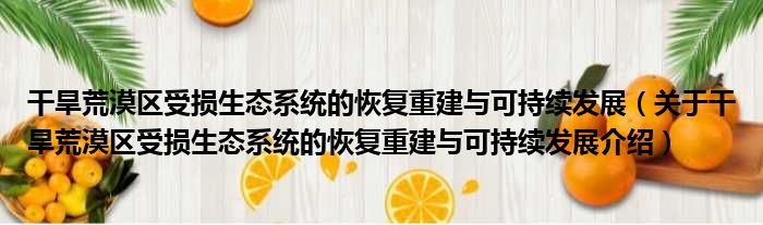 干旱荒漠區受損生態系統的恢復重建與可持續發展(關于干旱荒漠區受損生態系統的恢復重建與可持續發展介紹)