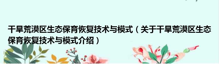 干旱荒漠區生態保育恢復技術與模式(關于干旱荒漠區生態保育恢復技術與模式介紹)