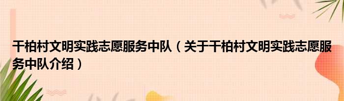 干柏村文明實踐志愿服務中隊(關于干柏村文明實踐志愿服務中隊介紹)