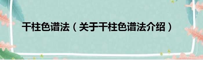 干柱色譜法(關于干柱色譜法介紹)