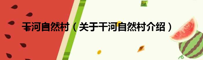 關于干河自然村到此分享完畢,希望能幫助到您。