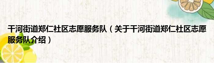 干河街道鄭仁社區志愿服務隊(關于干河街道鄭仁社區志愿服務隊介紹)