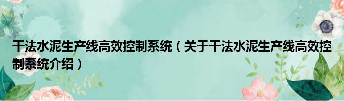 干法水泥生產線高效控制系統(關于干法水泥生產線高效控制系統介紹)