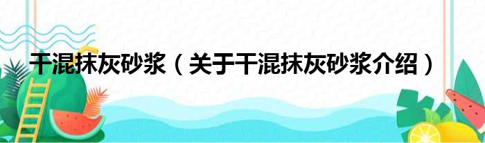 干混抹灰砂漿(關于干混抹灰砂漿介紹)