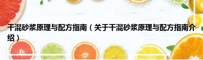 干混砂漿原理與配方指南(關于干混砂漿原理與配方指南介紹)