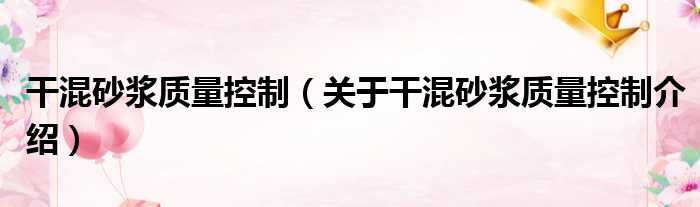 干混砂漿質量控制(關于干混砂漿質量控制介紹)