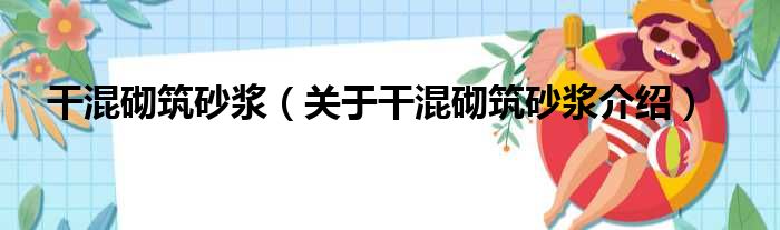 干混砌筑砂漿(關于干混砌筑砂漿介紹)