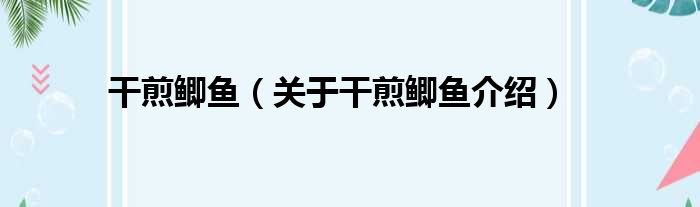 導讀 大家好,笑笑來為大家解答以上的問題。干煎鯽魚,關于干煎鯽魚介紹這個很多人還不知道,現在讓我們一起來看看吧!1、 干煎鯽魚是一道菜品