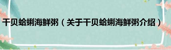 干貝蛤蜊海鮮粥(關于干貝蛤蜊海鮮粥介紹)